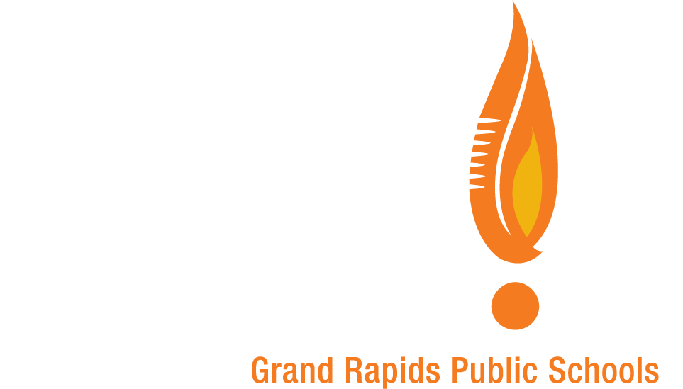The GRPS logo is built around the fiery academic virtue that serves as the foundation of our school system and should always be treated with respect. It may only appear in GRPS palette colors and must always be locked with the flame exclamation and “My Choice” mark. The logo must include the registration mark (®) at all times and should never be redrawn, retyped, or altered.