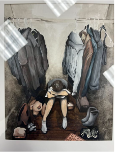 Second place went to Mae Rydingsward for “Gerascophobia.” The judges noted: “This compelling work showcases incredible attention to detail and technical skill, with layered textures and three-point perspective adding depth and emotion. The artist effectively uses composition and mood to heighten the narrative, creating a powerful image that unites content, concept, and technique.”
