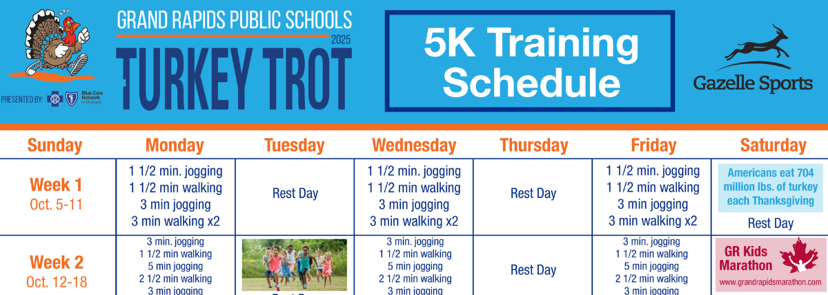 GRAND RAPIDS, Mich. (GRPS) -- With the crisp fall air rolling in, it’s the perfect time to lace up your running shoes and start training for this year’s Turkey Trot 5K!