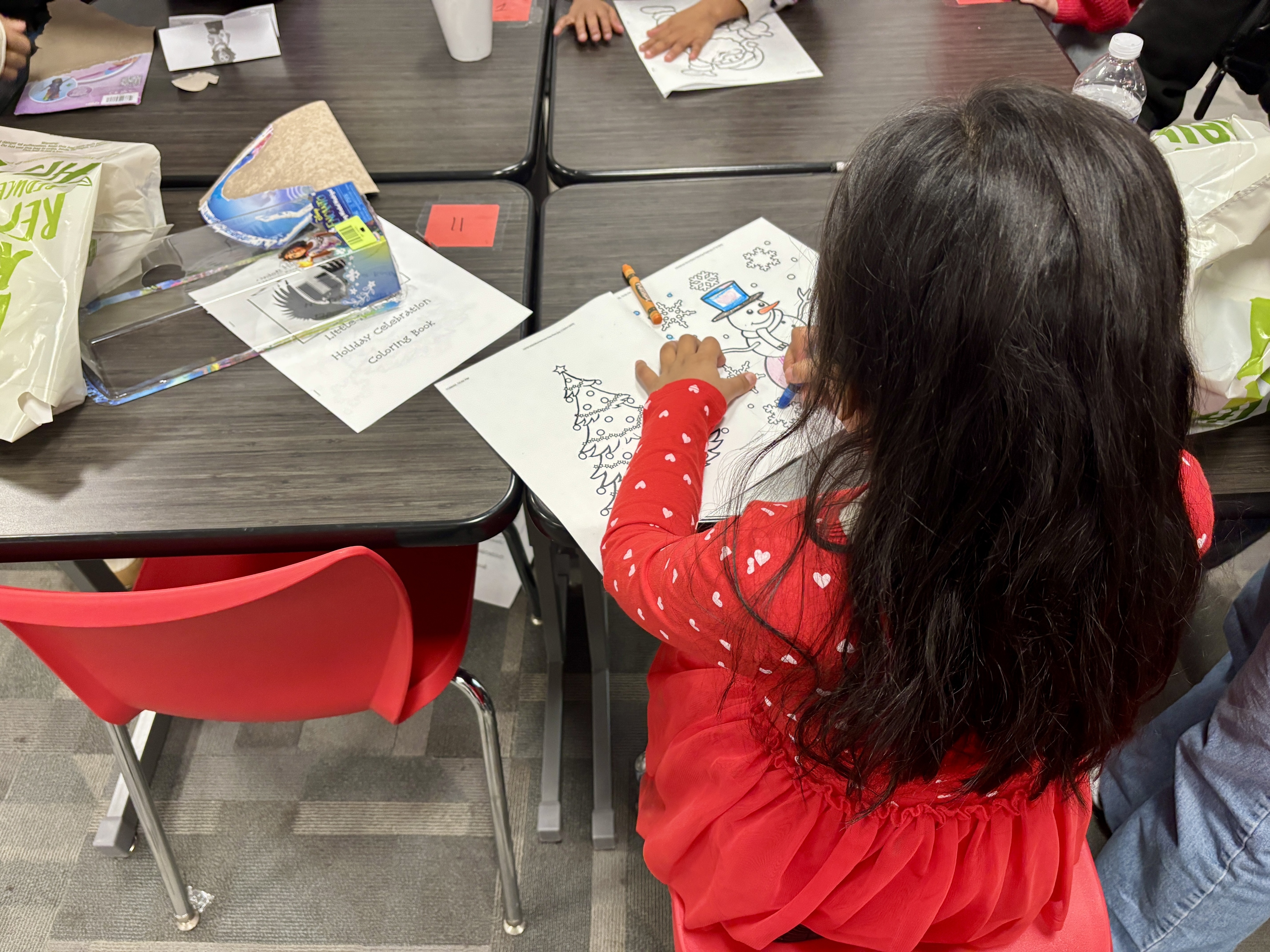 Union High School freshmen, along with scholars on various leadership teams, paired up with the visiting first-graders to serve as elves and guide them through classrooms to decorate cookies, play games, make crafts, and even receive a gift from Santa.