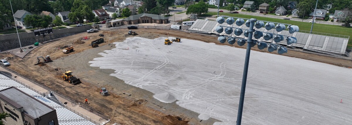 Renovations are well underway at both Houseman Field and Briggs Field, two venues that host athletic events, band camps, graduations, and more.