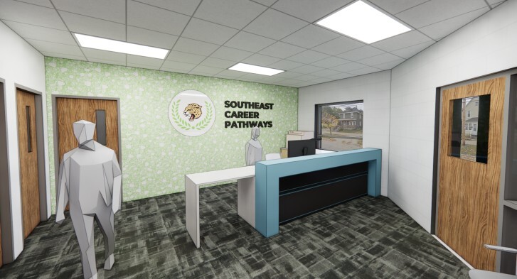The former Sigsbee School will reopen this August as the new Southeast Career Pathways campus. The $7 million renovation is converting the former elementary school into a vibrant high school environment filled with natural light, thanks to the installation of larger windows throughout learning spaces.