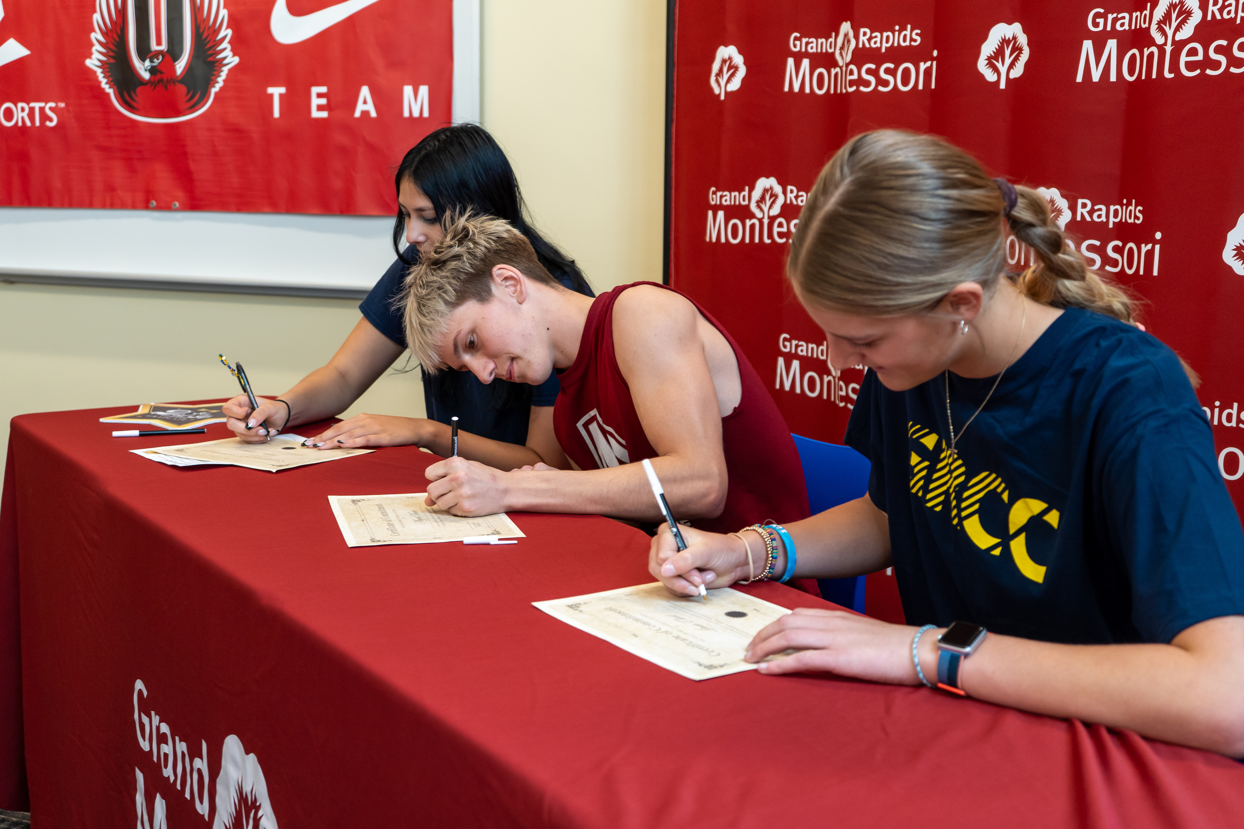 GRAND RAPIDS, Mich. (GRPS) -- Three seniors from Grand Rapids Montessori Middle High School have committed to continuing their athletic careers at the collegiate level.