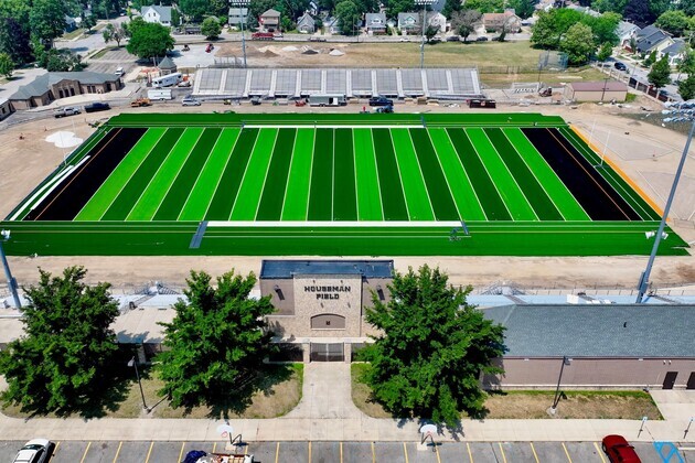 Check out this stunning aerial view of turf installation in progress at historic Houseman Field! The new field is already looking incredible. Next up is the track, with installation starting next week.