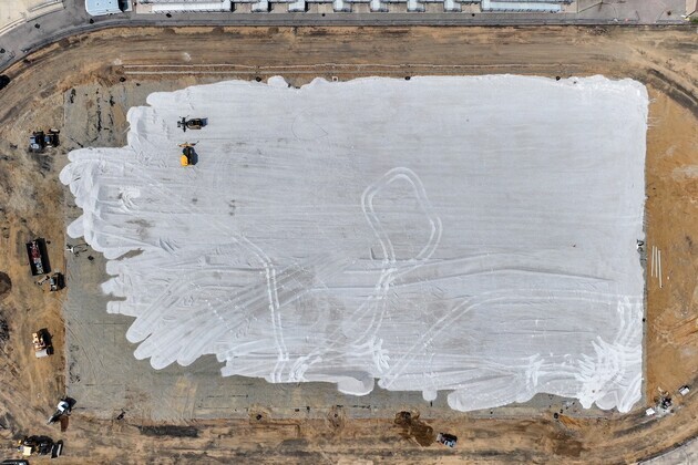 Final track top coat color is being installed.